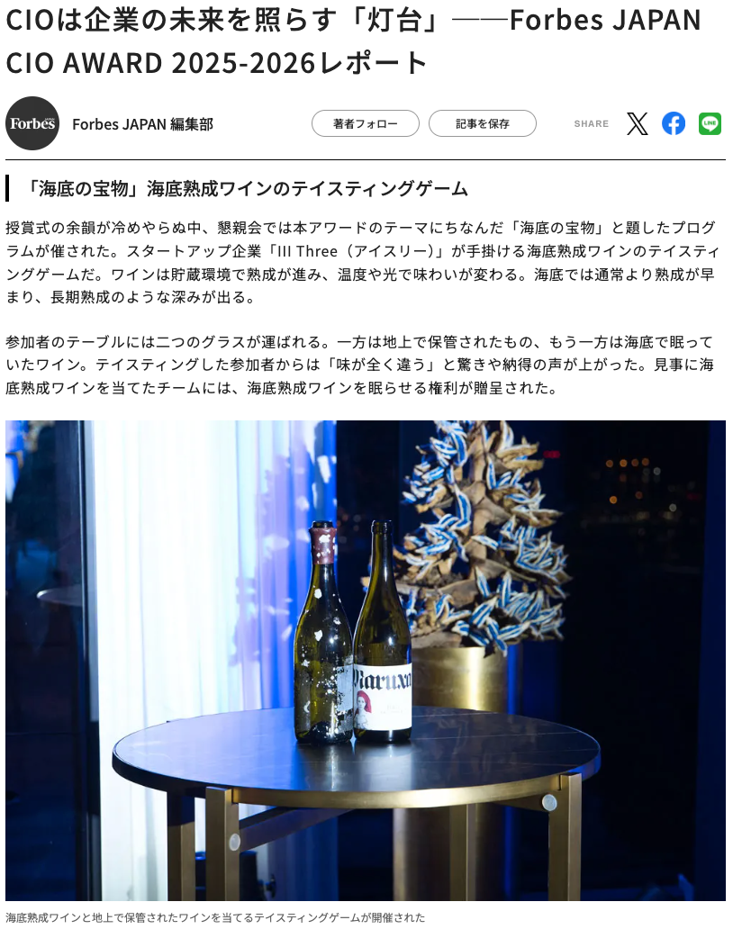 2026年2月27日、フェアモント東京にて「Forbes JAPAN CIO AWARD 2025-2026」が開催され、当日は審査を行ったアドバイザリーボードのメンバーをはじめ、歴代の受賞者、そして変革の最前線に立つリーダーたちが一堂に会しました。